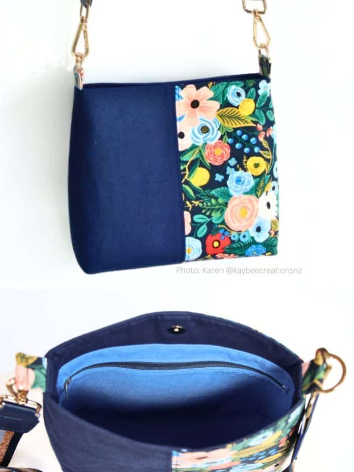 Kay's Lumera bag in blue faux leather is beautiful - that contrast topstitching really pops! More photos at her IG channel, @kaytriffitt.