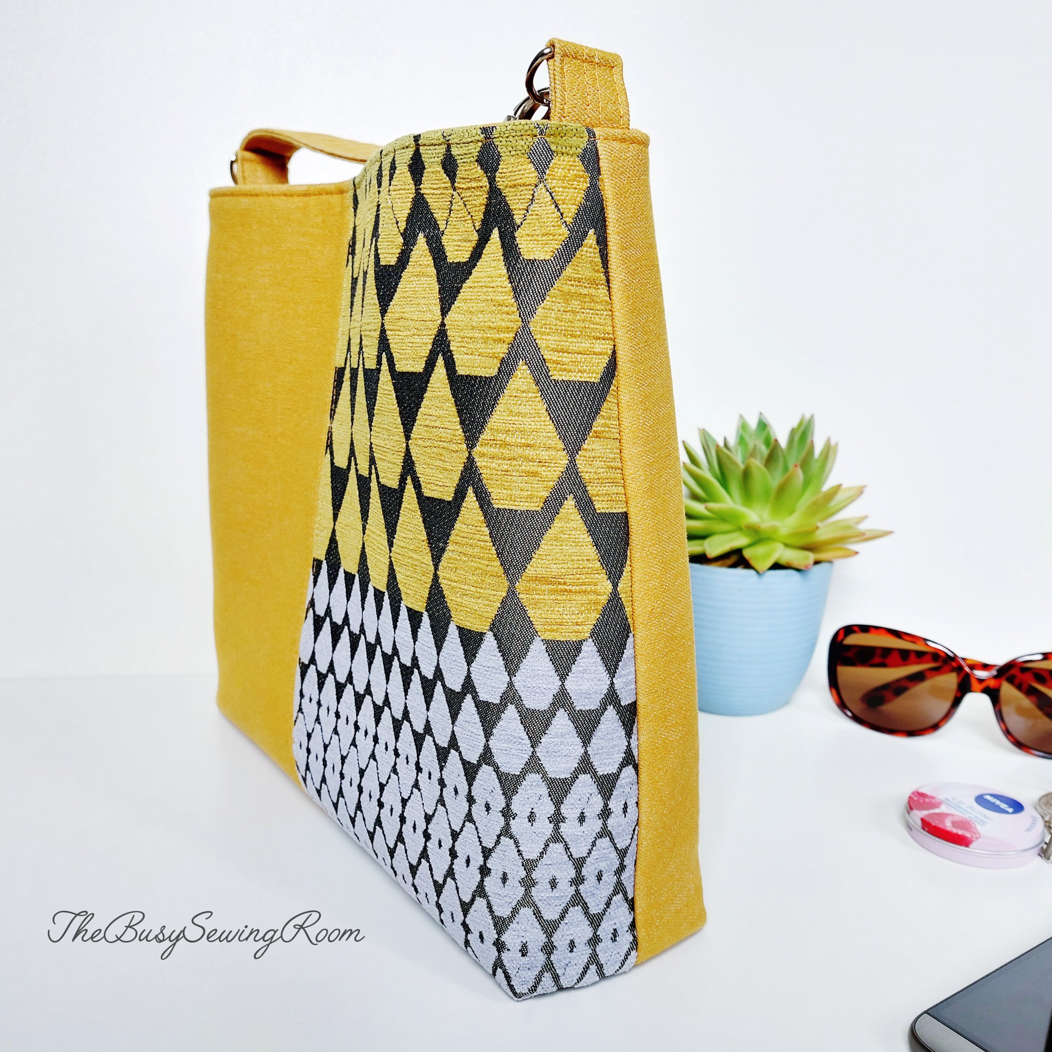 Ulrike at @thebusysewingroom used mustard denim and patterned upholstery fabric for the outer, quilting cotton for lining. Stunning, vibrant, modern!