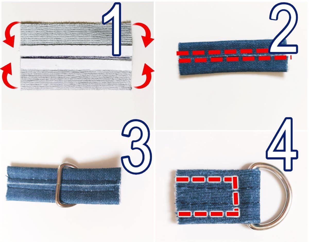 - Slide the D-ring on and fold in half, bringing the ends together. This will hide the raw edges.