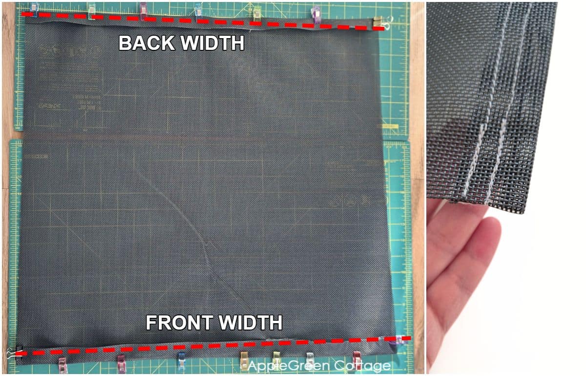 - bottom width of the seat back: 18 ⅝" visible mesh from rail to rail, visible part + plus 1 ½" seam allowance (single hem) on each side
